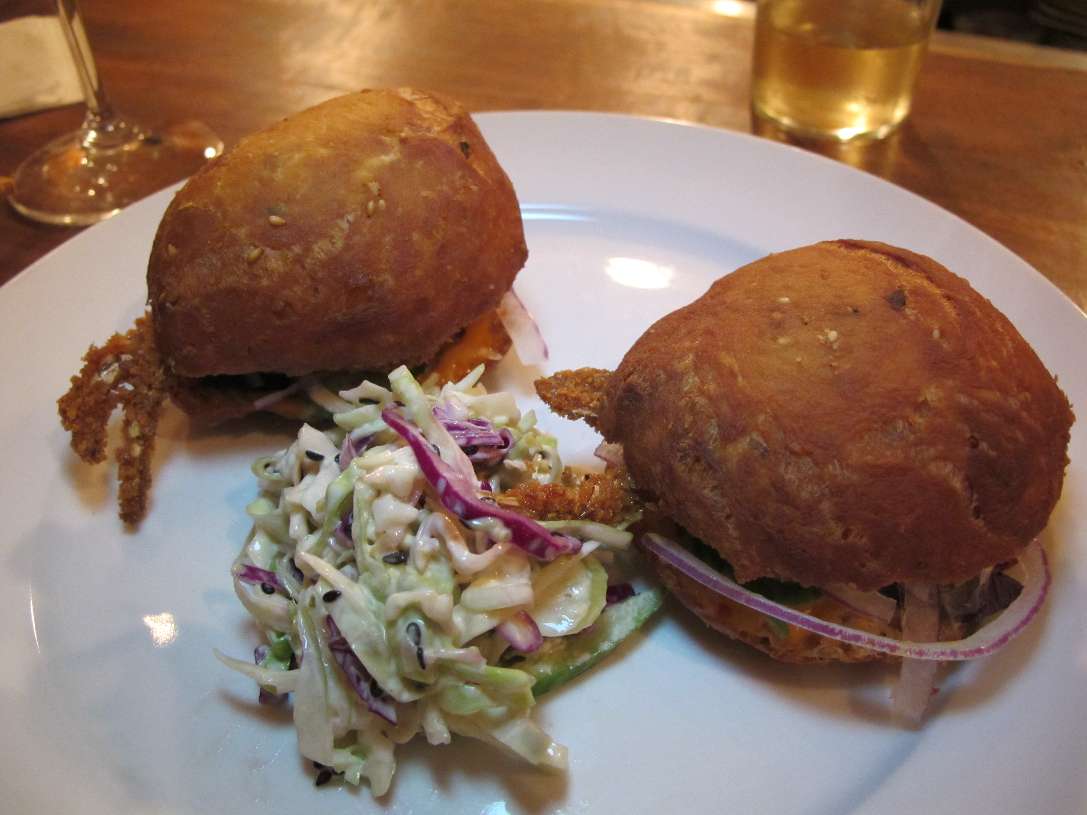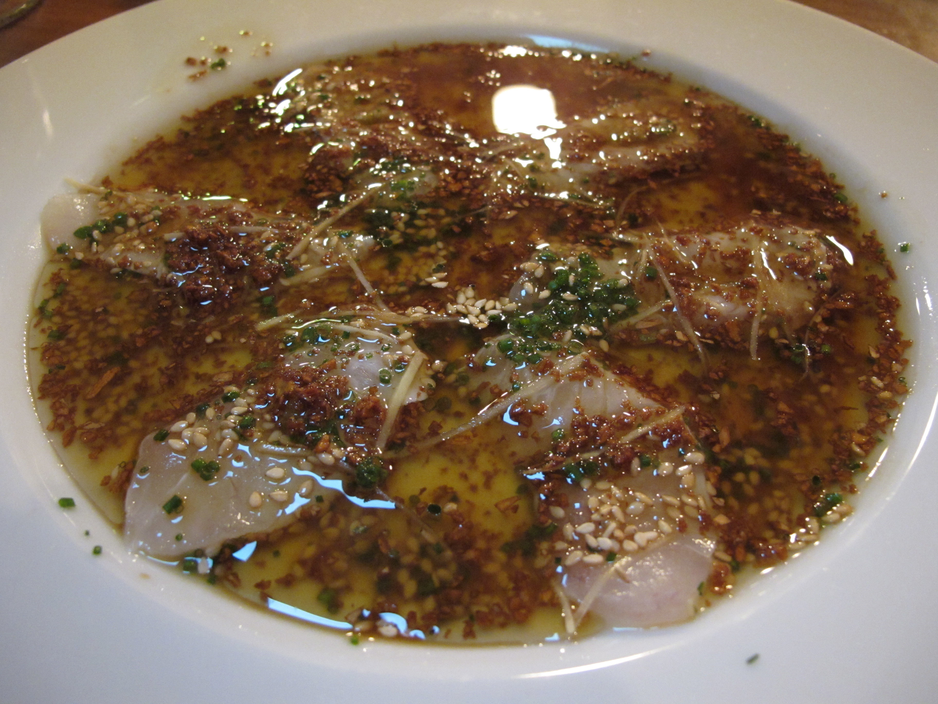 We both poured over the menu, torn over trying the things we had loved from Sea Saw and exploring new creations. In the end, we chose a little bit of everything. The Grapefruit & Hamachi reminded me of many wonderful evenings at Sea Saw, as did the Shiromi Carpaccio. Sean ordered the Kumamoto Oysters with Uni, that was served with a sweet tomato water and wasabi oil, which I couldn’t resist either. The Pork Belly Buns with pickled celery and the Panko-Fried Soft Shell Crab Sandwich are both incredible new dishes that I am thrilled to see are on his lunch menu as well.
