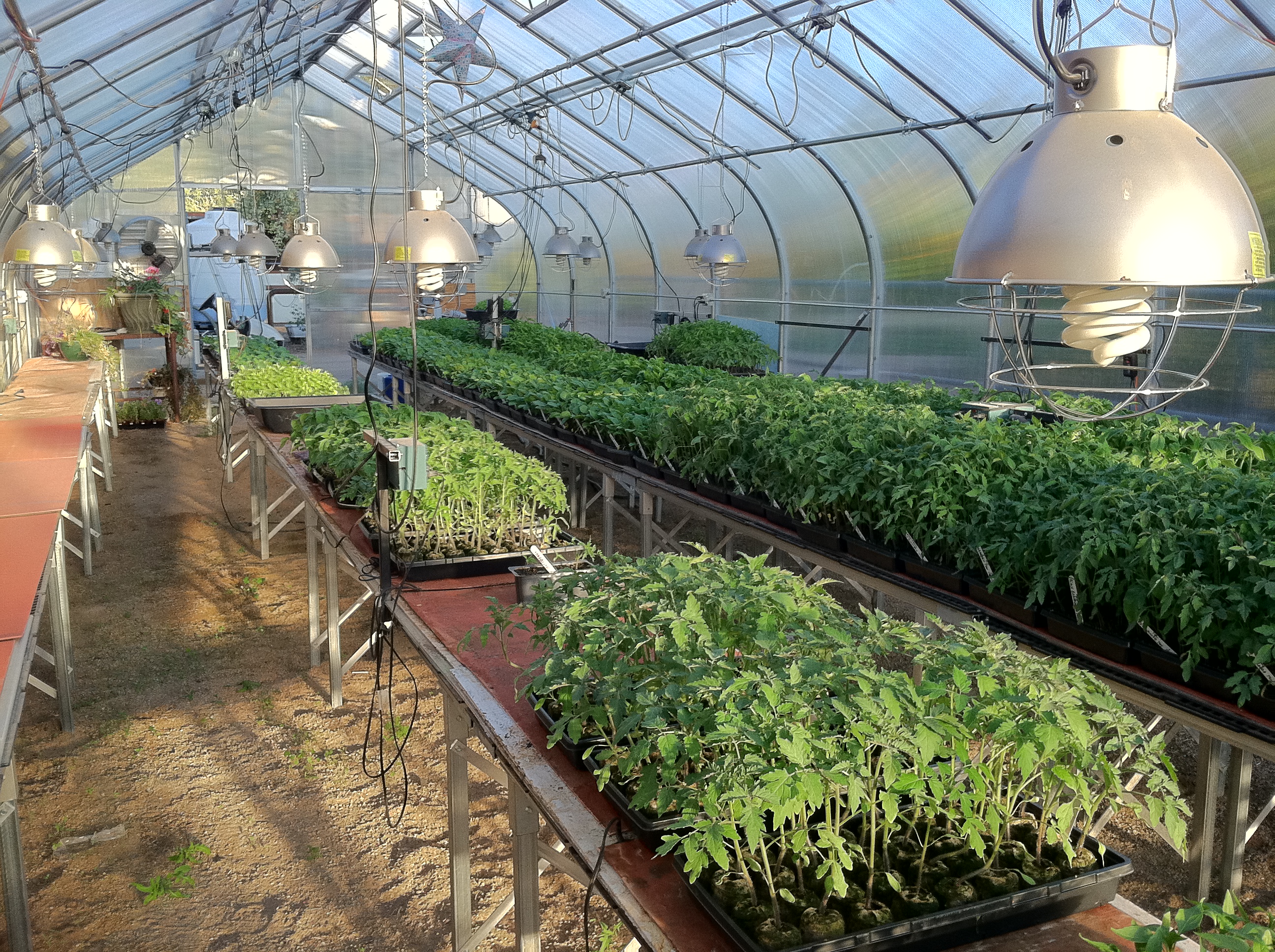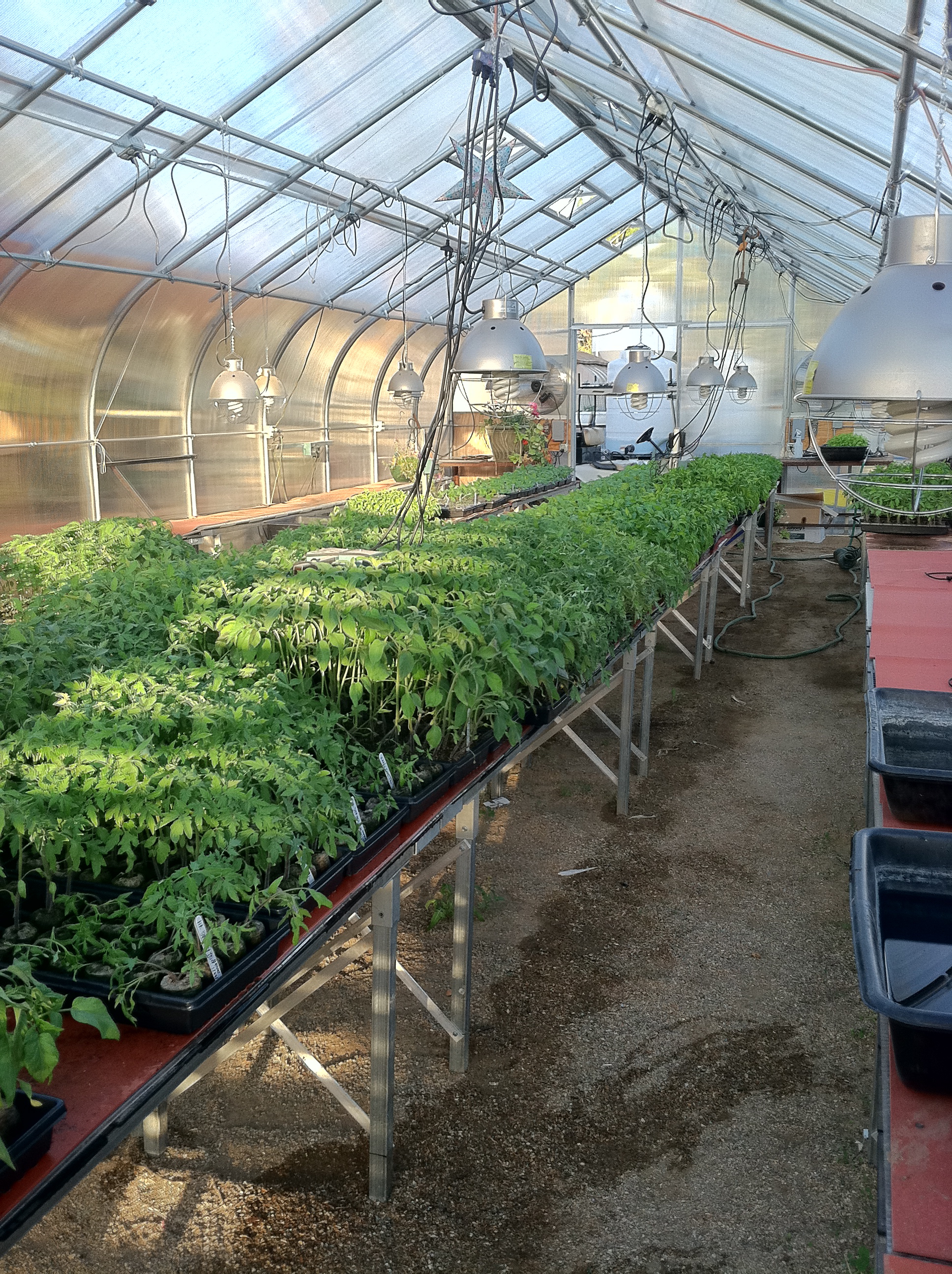 The basil has been planted in the basil house in the front and is thriving. We had some heaters blowing hot air after a few dips in the temperature, but it should be fine now. The peppers are going in the arugula house once it has been spaded. The tomatoes will take residence in the front garden and the eggplant in the back field.