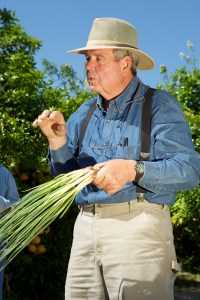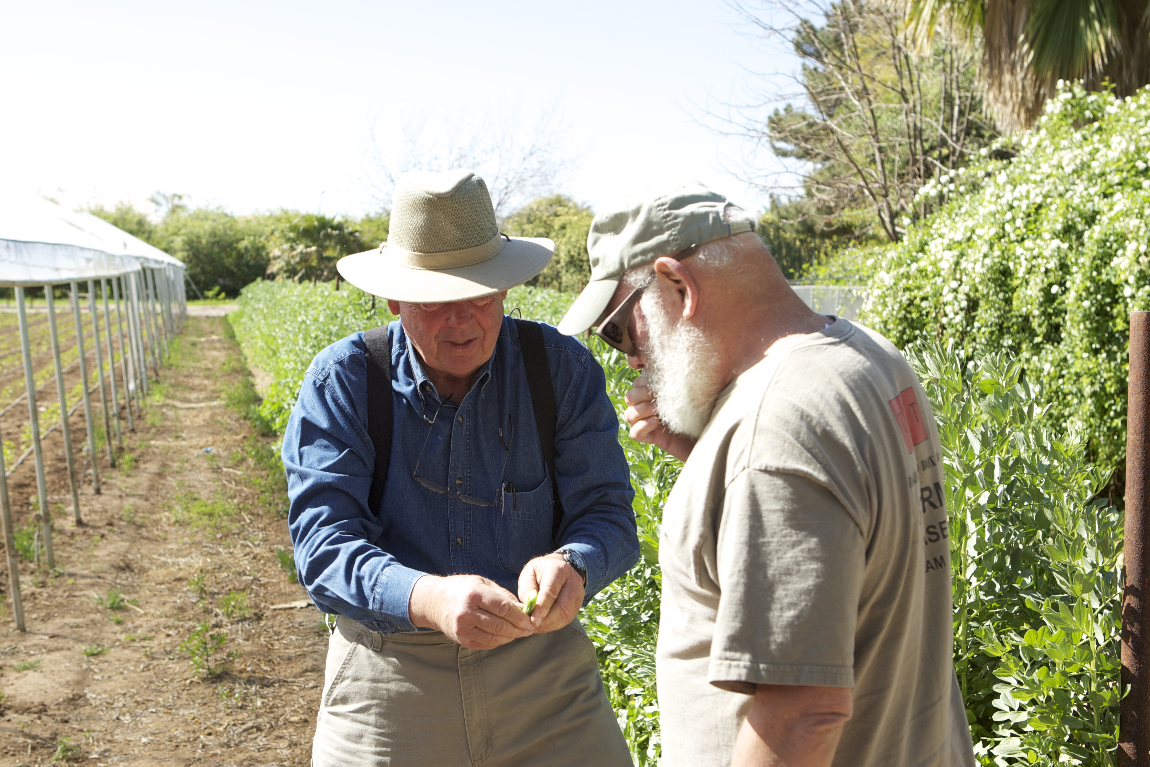Throughout the tour Dr. Weil was interested in trying the fava beans, the basil, green garlic and I’itoi onions. He was very hands on wanting to taste, smell and study each of the plants. They were of the same mind when it came to the personal wellness benefits that come from organic growing.
