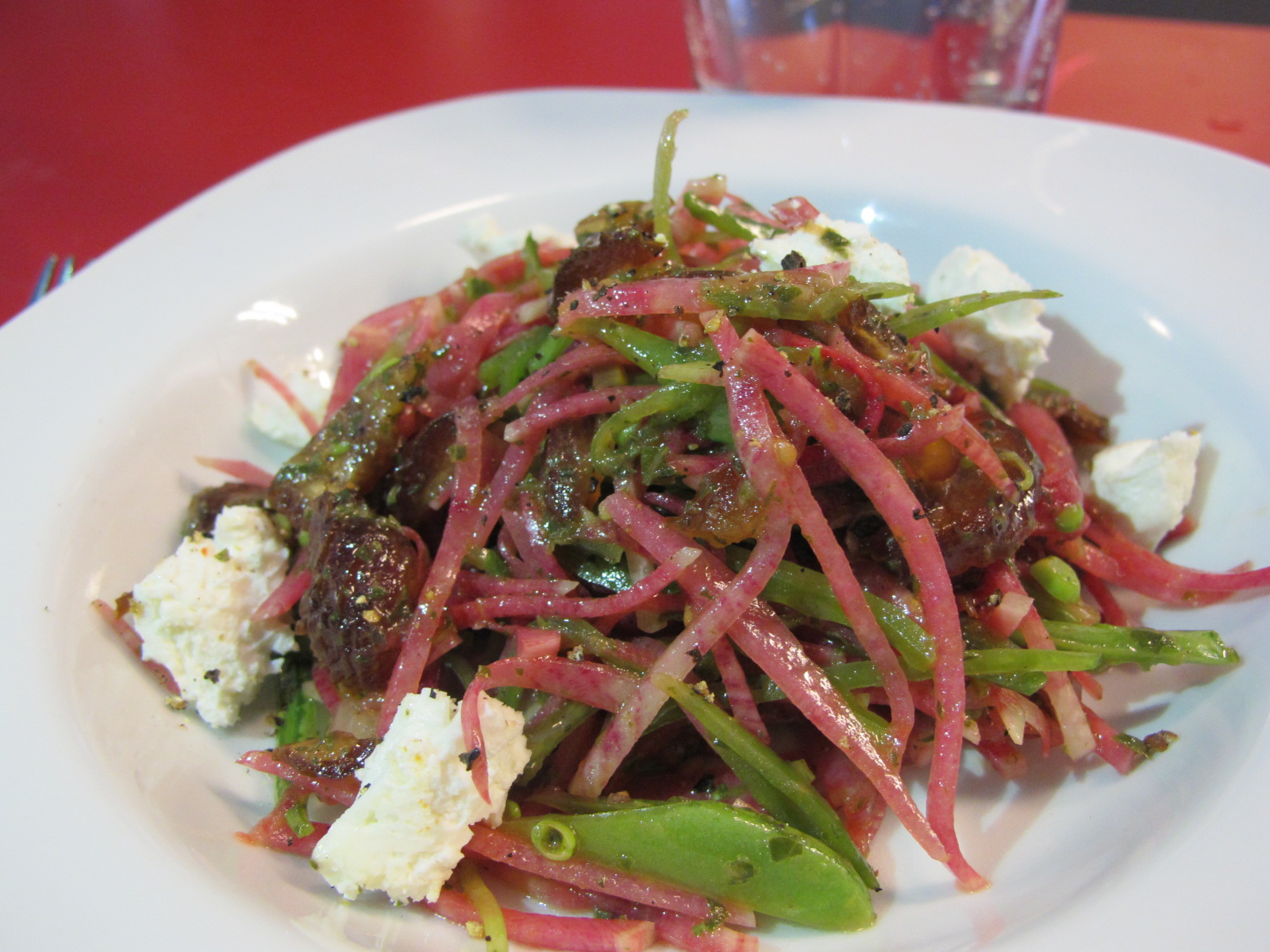 This was one of my favorites that Payton whipped up with watermelon radishes, sugar snap peas, dates, goat cheese and a vinaigrette…