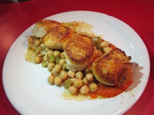 Diver Scallops braised in lemoncello and served with green garlic and chickpeas…