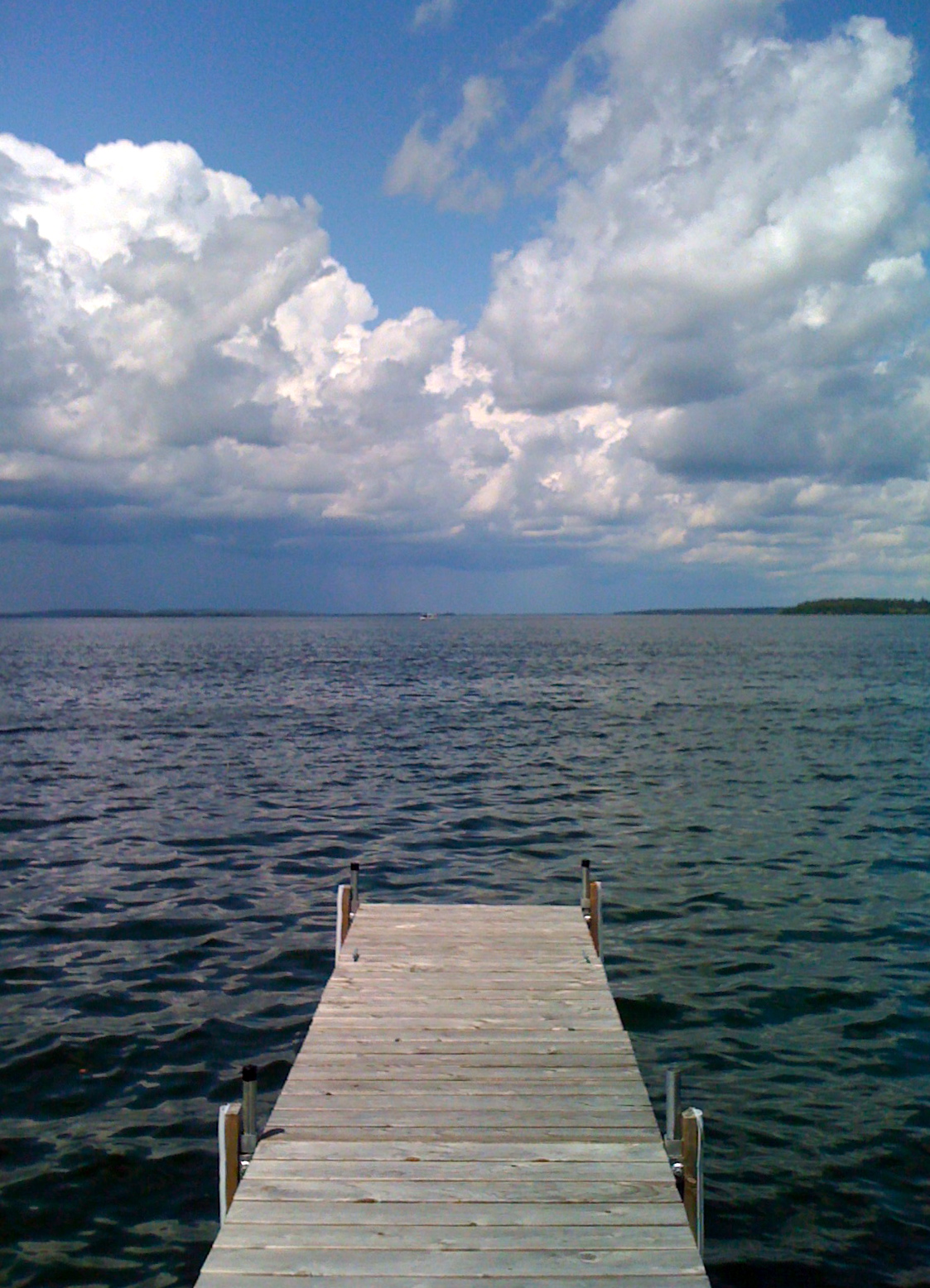 Once a year Sean, Aidan and I make a trek up to a lake that has this kind of view. We hang out with my family, extended family, and people who have become like family swimming, cooking, reading in hammocks, and in general doing a lot of laughing. Every year there is always some recipe that gets made, remade, discussed, and obsessed over, with leftovers disappearing from the refrigerator before you can get back to them. This year, it was all about Cucumber Salad. You don’t need to sit out on a dock like this to enjoy it, but it doesn’t hurt.