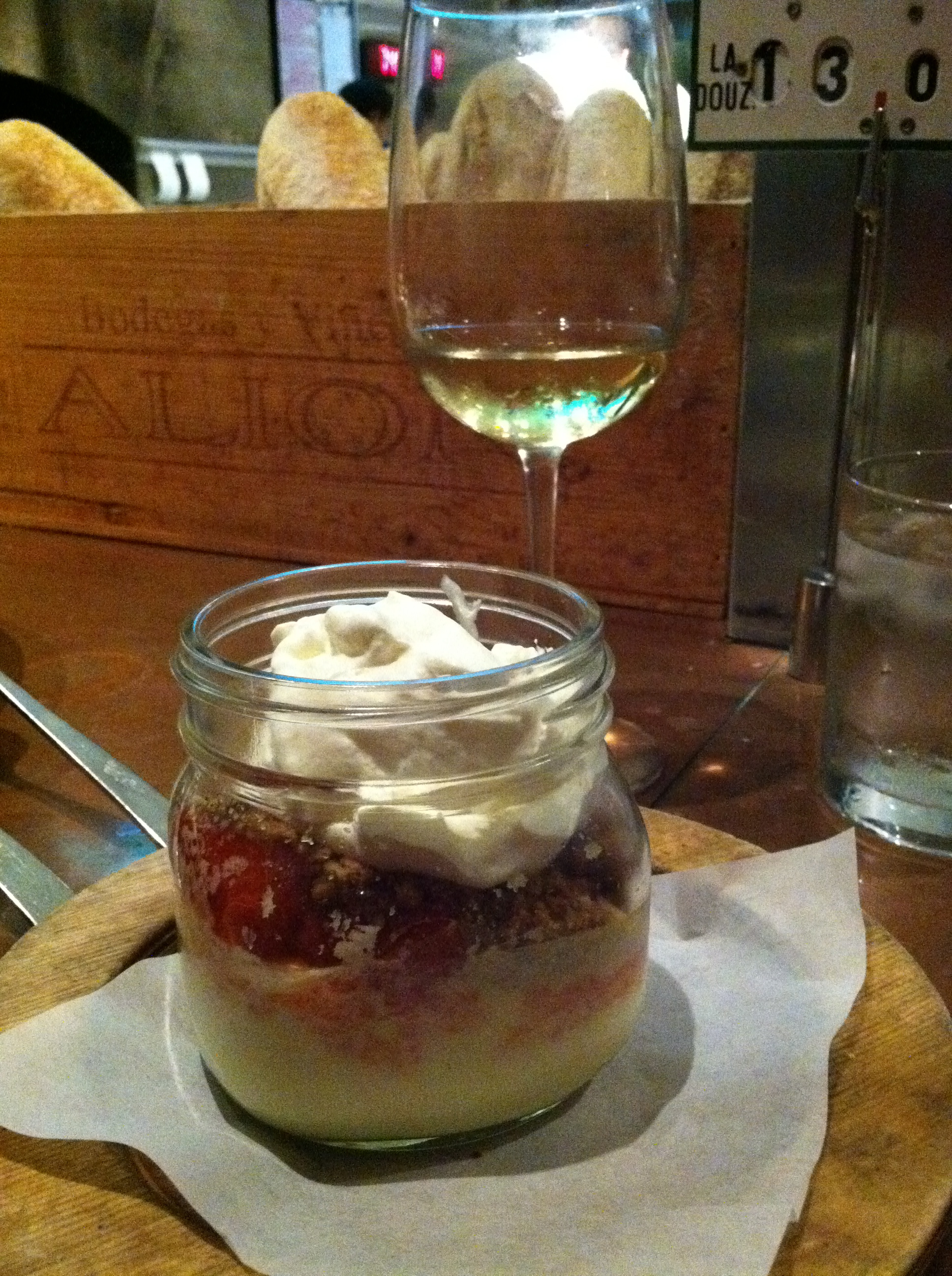 The wood roasted seasonal vegetables are now on that list too. It was a beautiful blend of flavors from a creamy butternut puree with roasted cauliflower, with a tangy kick from dried currants, and some pine nuts and spinach to round it out. I have a feeling I will be attempting something similar at home soon. We also had two fabulous desserts, and why not, we had worked hard. Their Sticky Toffee Pudding is another one from our favorites list, and now the Cheesecake in a Jar is as well. Nevermind that it came with strawberries and an almond crumble, they had me once I saw it come in a mason jar. Why is that immediately appealing to me?