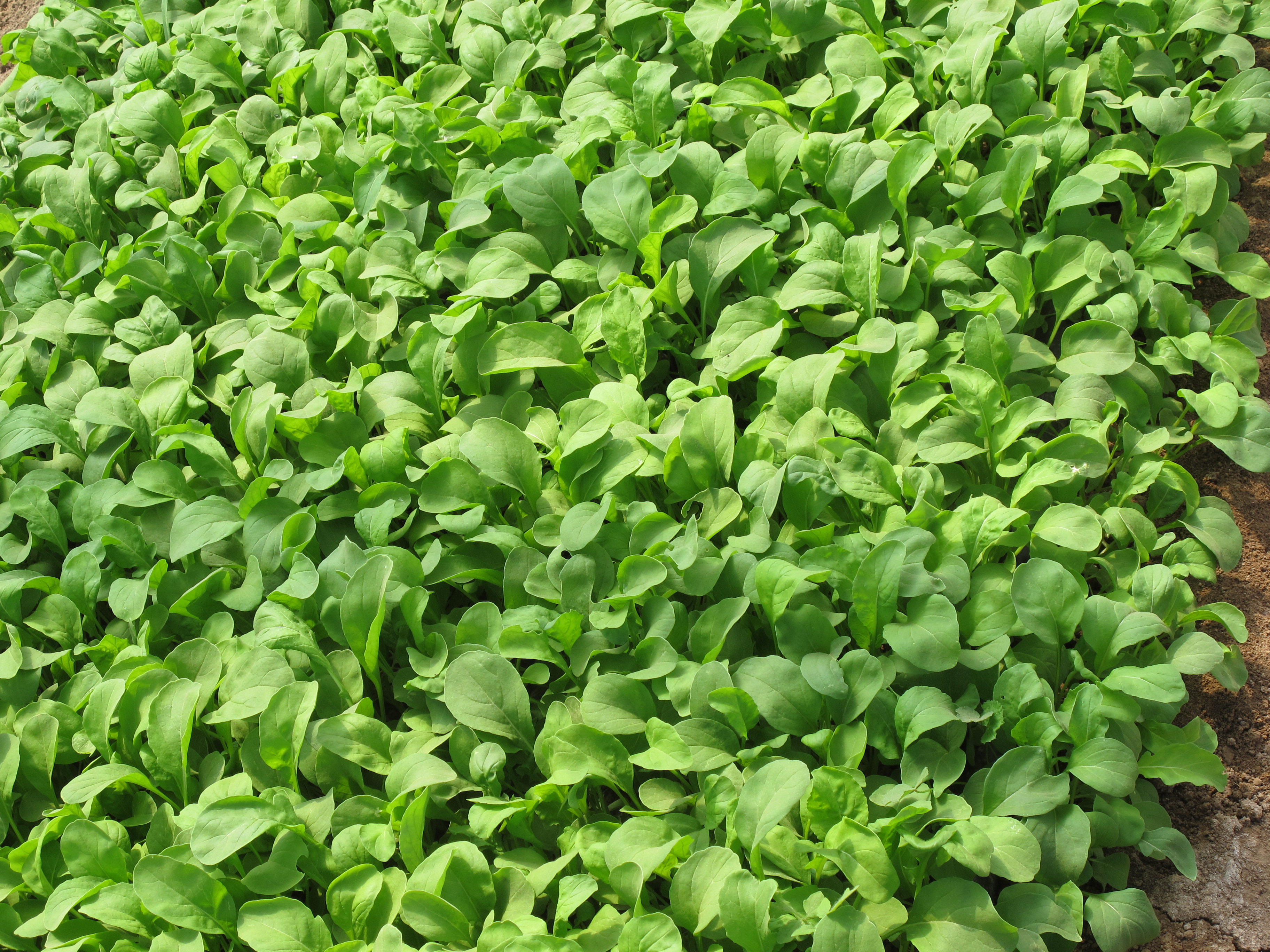 Why the difference? Well, each section was planted about a week apart, so that they may be harvested and then replanted a week apart, rather than having all of it fully grown and ready for picking at the same time. There is more than a little planning involving in getting this down to a perfect science. But the details matter. We do this with a number of crops to make sure that there is enough each week for the restaurants we work with and the farmers’ markets once they are back in full swing. When it cools off a little more, we will rotate the arugula out of the high tunnel and allow something else to enjoy the shade it provides.