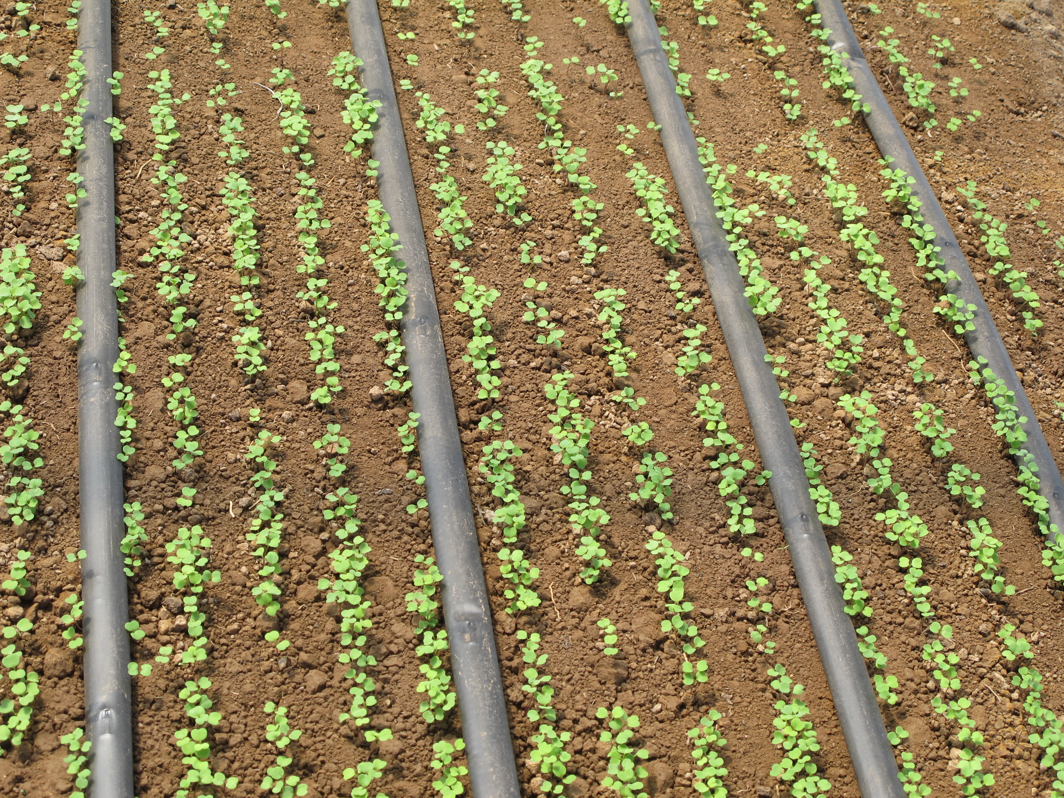 Often in this heat plants are not able to properly germinate. By keeping them protected like this, we cut down on crop losses, and also prevent the birds from who are more than happy to eat up the seed as fast as it goes into the ground.