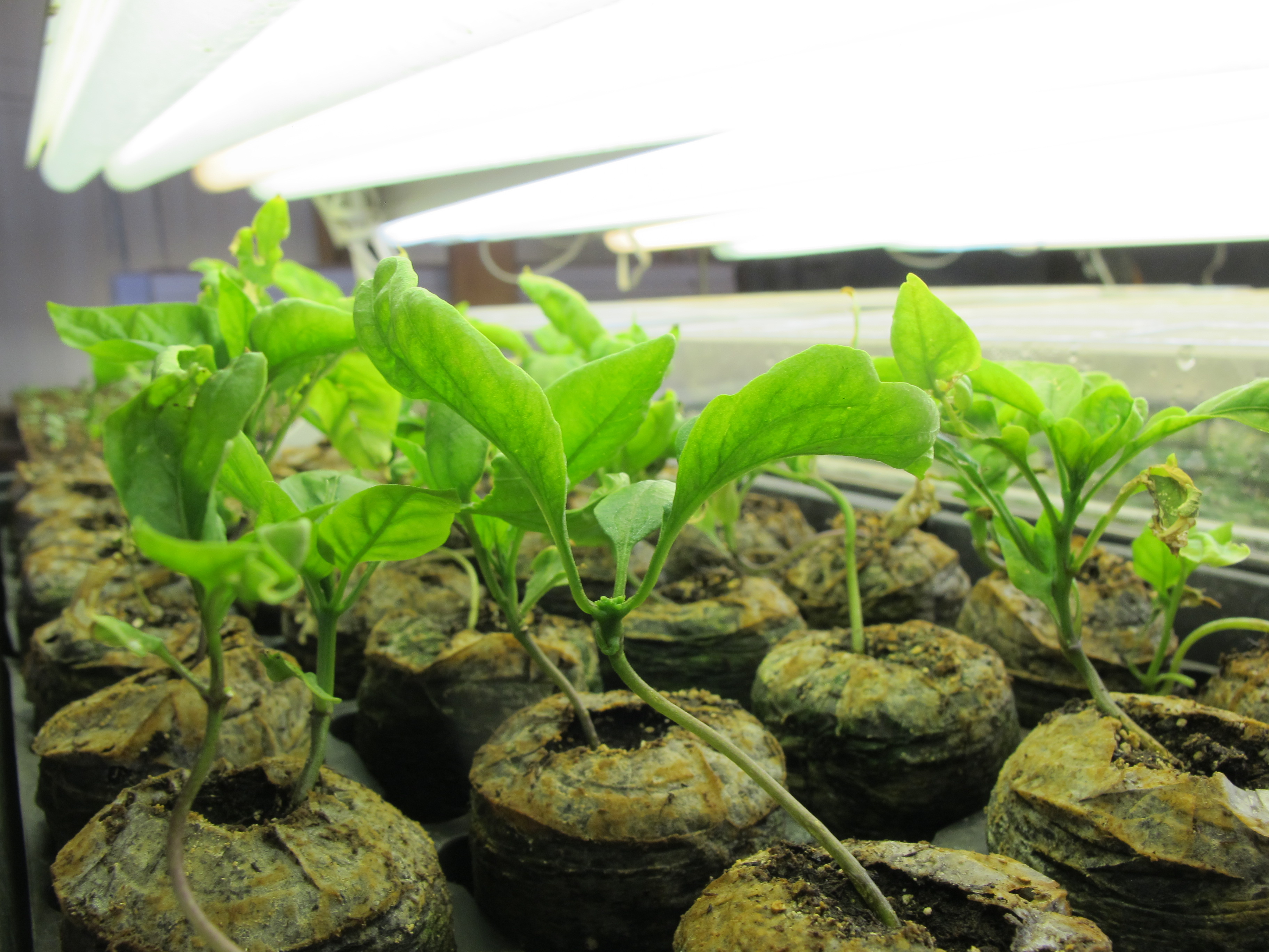 Inside under the grow lights, it looks the same. We have little plants in all stages, waiting for their turn out in the field. The grow lights are working overtime to get all of the seedlings for our fall crops mature and hearty enough for planting. Right now it is too hot even in the green house, so we have the grow lights set up where it is shaded and cool to keep the seedlings from burning up. When it cools off enough during the day we will move them into the green house and then finally out to the fields.