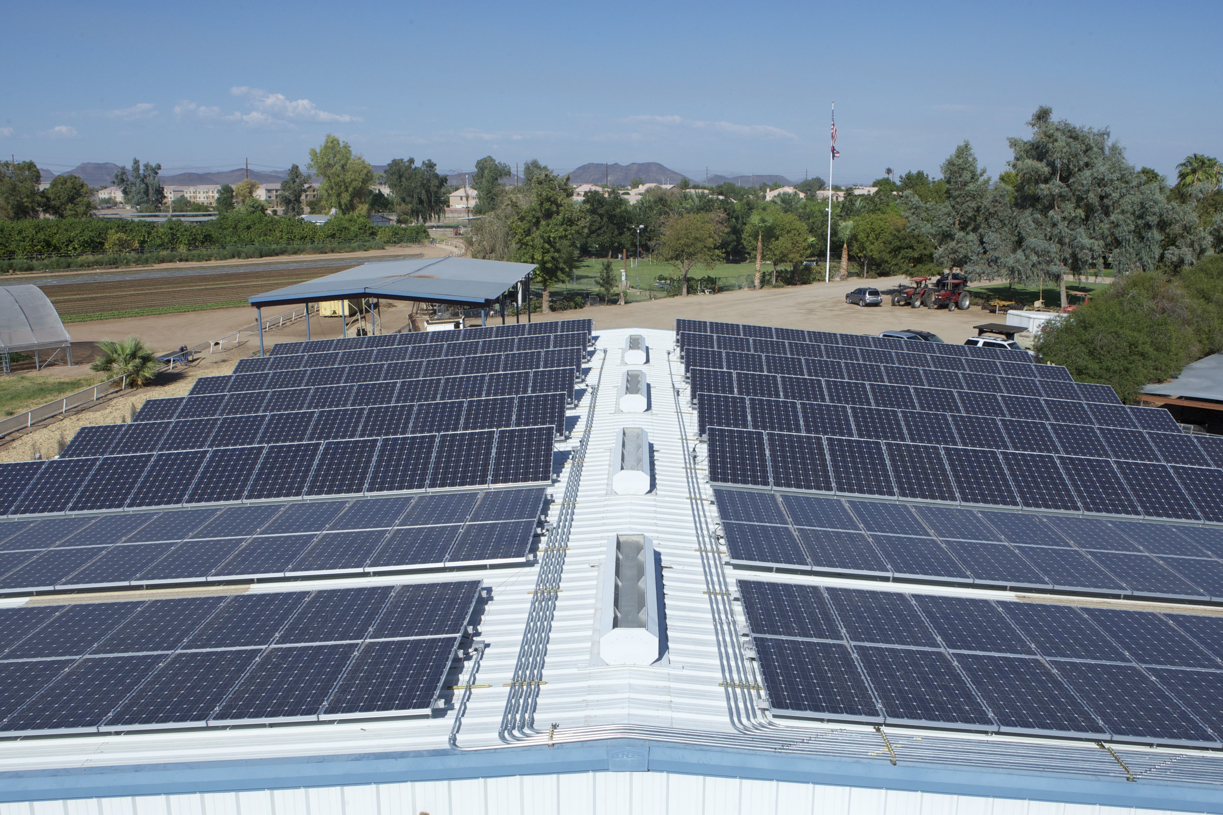 This is taking our organic farm into a whole new level of sustainability. This system will provide our farm with clean solar electricity for the next 25-30 years. The projected annual electricity production from the system will 86,200kWh. At this yield the system would offset 4,126,124 lbs of carbon over its lifetime, the equivalent of planting 42,609 trees or saving 211,843 gallons of gas. Royal Solar of Arizona could not have been easier or nicer to work with. Everything from the moment we started working on this project was handled professionally and efficiently. They did a beautiful job with the installation and we are excited to partner with them on this project. They have installed a similar system at the Queen Creek Olive Mill. They do residential installation as well. For more information, visit www.royalsolaraz.com. They have a write up about our specific project as well that you can find here.