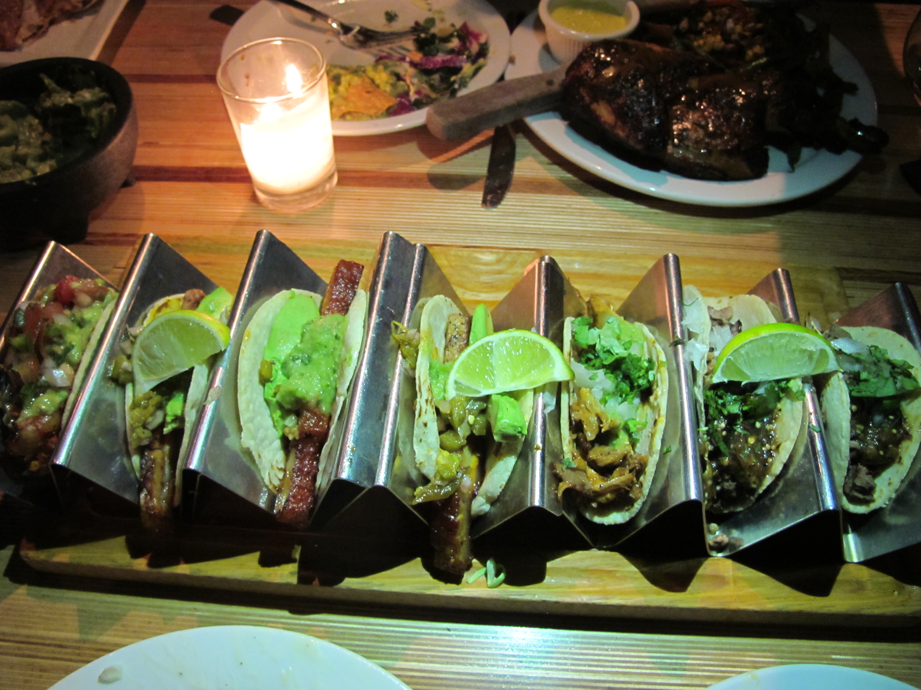 It is also my belief that great food can come in all forms, even humble ones, and that food can have a sense of humor as well.  Like a street taco.  I don’t know that food can get more humble than a street taco. There is something very self-deprecating about a beautifully cooked piece of carne asada, accompanied by nothing more than a little salsa and wrapped in a hand-made corn tortilla.  To eat something that gives so much pleasure, for less than three dollars, makes street tacos somehow both mouth-watering and a little ironic.