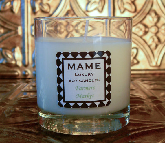 We received a lovely gift at the market this past weekend. Two of our customers gave Bob a candle that they had created in honor of him. The MAME Luxury Soy Candle are created by two friends, Maria and Megan, who locally hand make all of their candles. The candles are made from soy, so that they will burn longer, and come in a variety of scents with names like “Sunday Brunch”, “Summers in Colorado”, “Downtown Friday Night” and “Happy Hour”. The candles were created to honor places or moments they love, and they were sweet enough to name one the “Farmer’s Market”. The “Farmer’s Market” candle is a mix of gardenia, oranges and lavender and reminds me as well of the market, especially early in the morning when the baskets are piled high with all sorts of goodies from the farm.