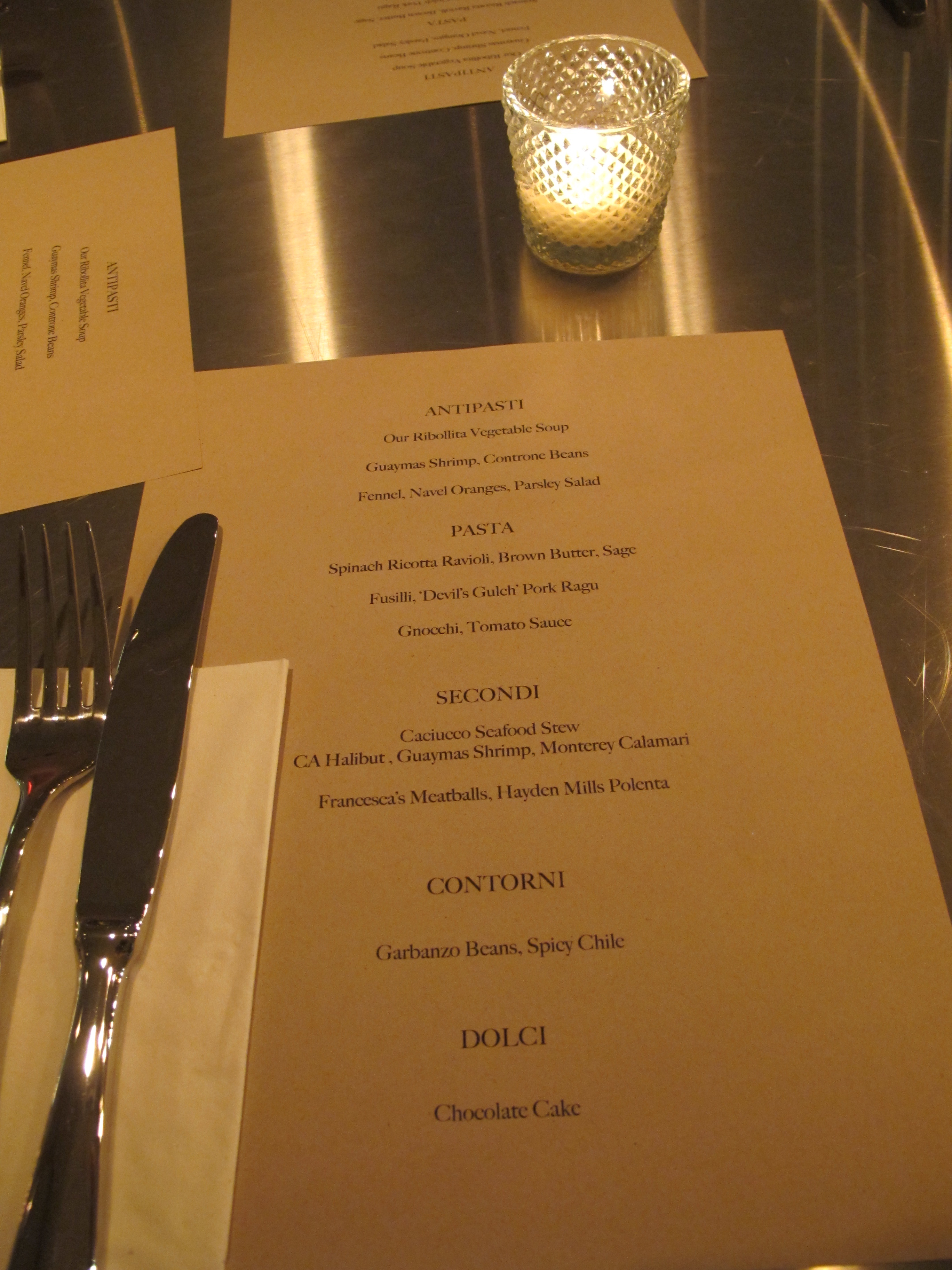 He wanted Italian Restaurant to be a place where people could come and eat the way he enjoys the most, sitting together and sharing a meal and a little history.  Chris wanted that felt in the menu too.  His mother’s meatballs are featured on the menu and the desserts are from her as well.  His brother Marco is making that famous Bianco bread, the kind that is hard and crusty on the outside with a chewy heart of doughy goodness at its center.   This restaurant does not have the infamous Bianco name on the door, because Chris did not want the restaurant to be about him, or just about his family either.  He wanted his chef, Claudio Urciuoli, to include the recipes that he grew up on, dishes that his mother and grandmother made.  This is about Claudio’s family, and Chris said, it is about ours.  He wants the menu to change regularly, to have dishes that evolve with the seasons from the farm.  This is about our combined story and contributions as chefs and farmers.