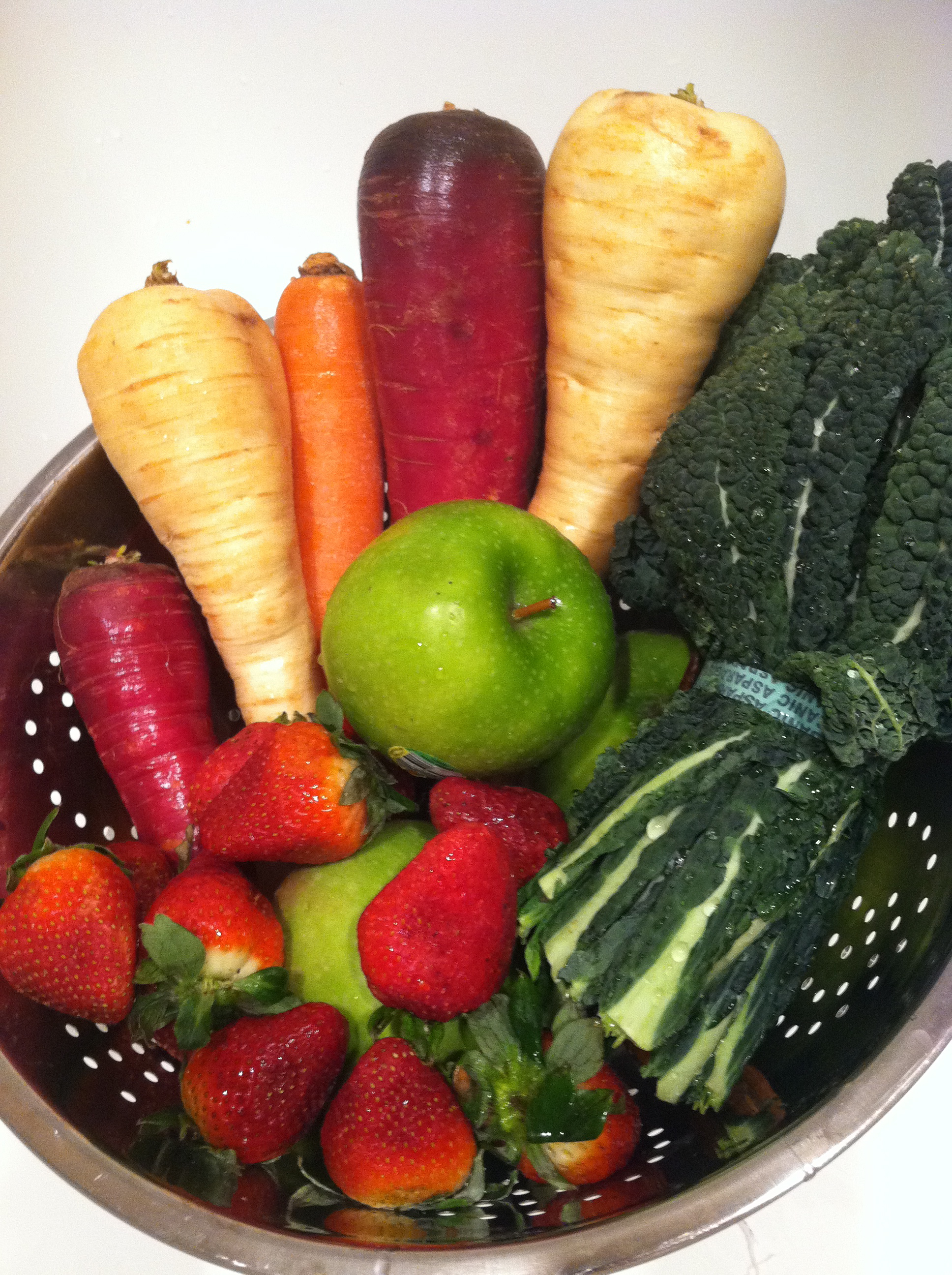 I posted last week on two smoothies served at Ricardo’s Cafe at the Cancer Treatment Centers of America. These drinks are designed not only to be enjoyed, but to nourish your health. With their permission, I have been given the recipes from their cafe to publish. Having tried several of these myself, I can tell you that not only are they delicious, they make you feel amazing afterwards. Their smoothies inspired me to start juicing more at home, not just with these recipes, but with all sorts of combinations of fruits and vegetables we have brought home from the farm. Aidan and I have made several, which we have both enjoyed. If you want your kid to drink something bright green and good for them, have them help you out. Aidan felt like a mad scientist throwing all of the ingredients in the juicer, but then he drank every sip and asked for more.