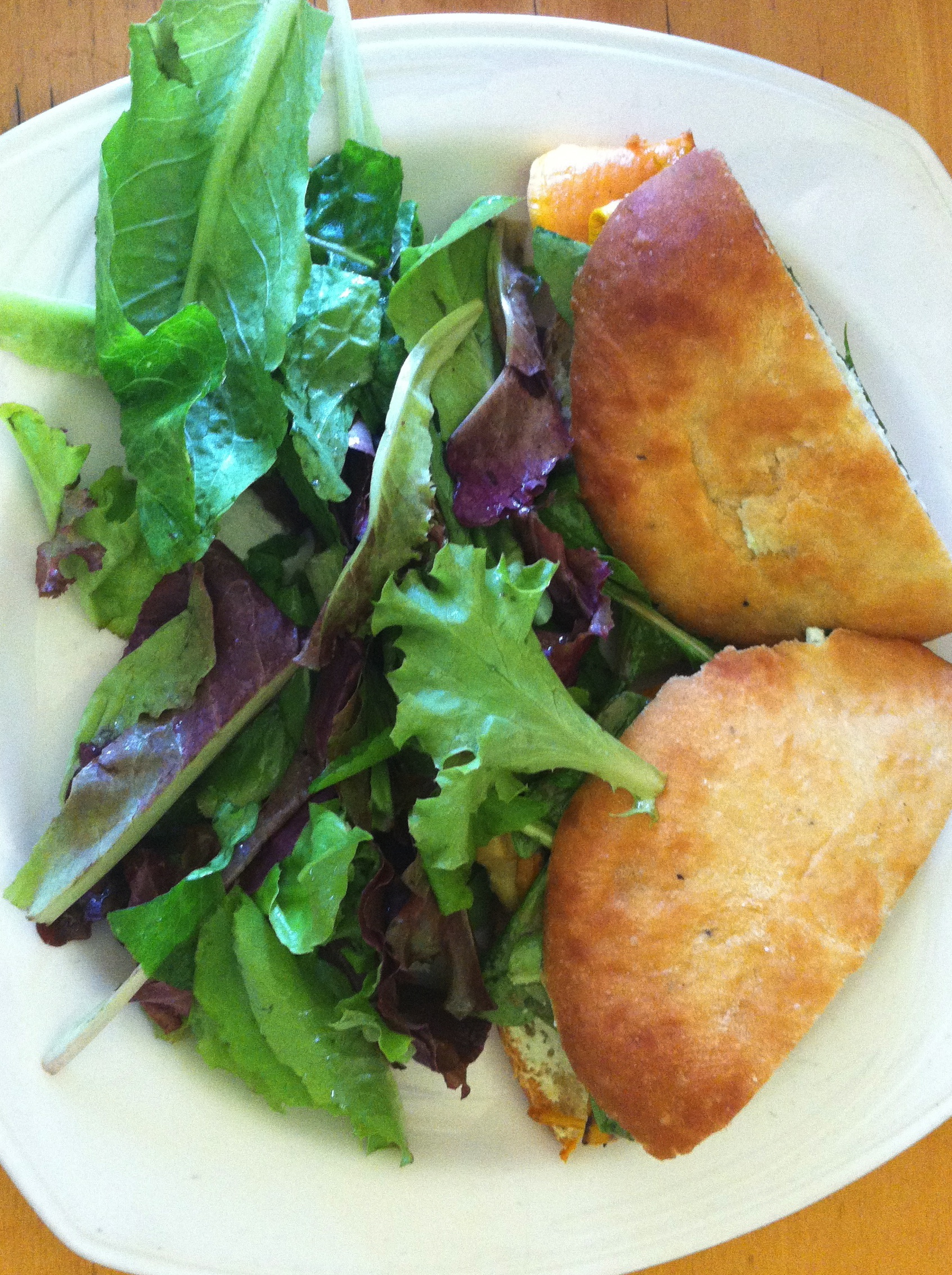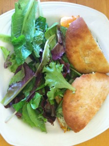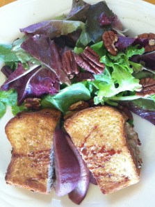 Sean ordered the Mediterranean Roasted Vegetable sandwich with our organic greens as a side salad. It was a tasty mix of roasted zucchini, eggplant, sweet red peppers and a pesto goat cheese.
