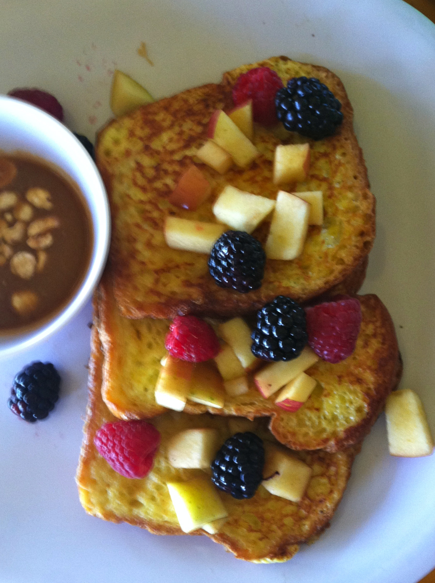 Aidan went with breakfast for lunch with the Brioche French Toast that came with a banana-caramel sauce with hazelnuts on the side. We all kept stealing bites. It was heavenly.