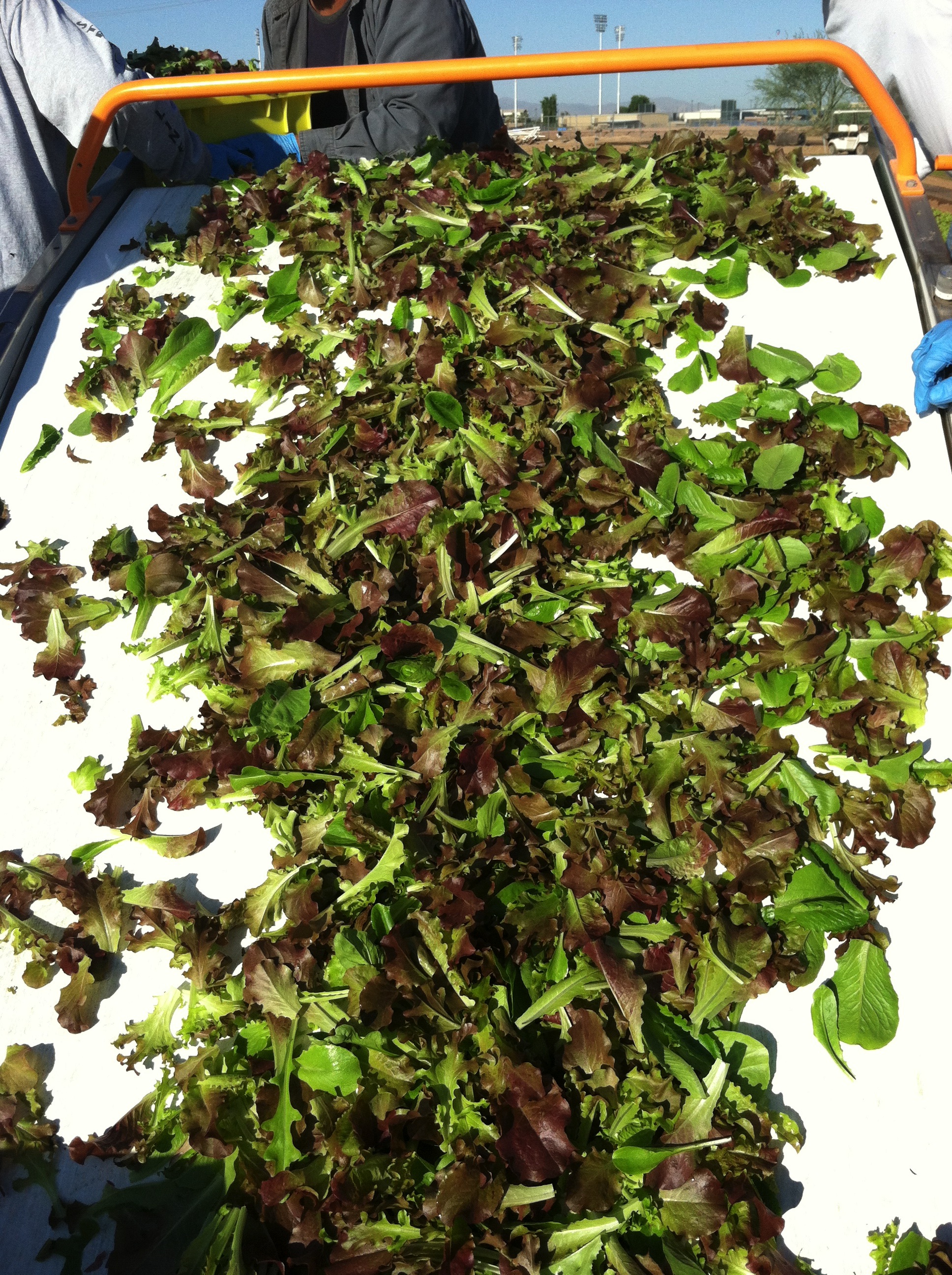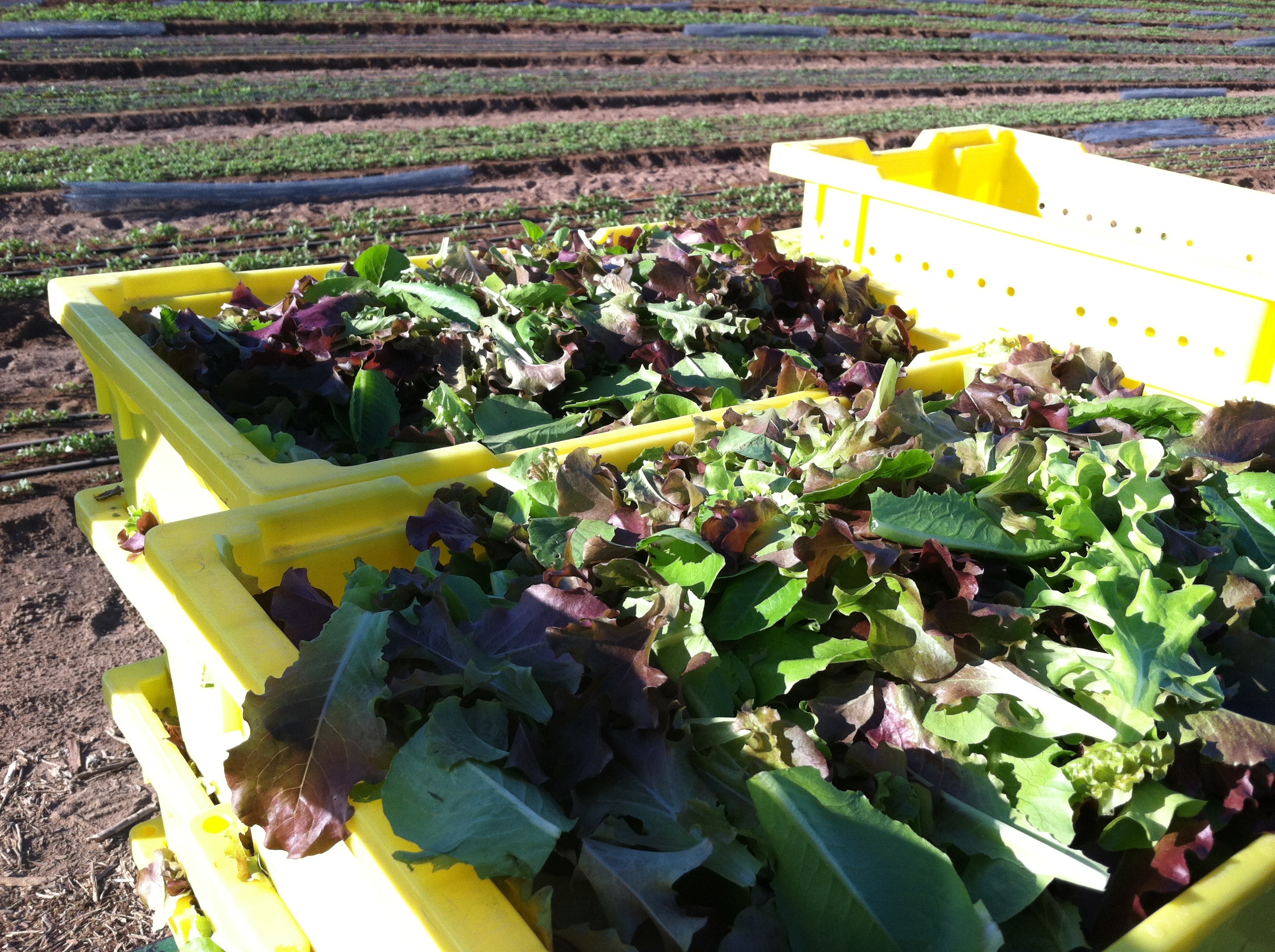 We will be back bright and early tomorrow morning at the Town & Country Farmers’ Market with bins filled with all sorts of fresh goodies from the farm. So fresh that the lettuce was cut just this morning. Take a look…