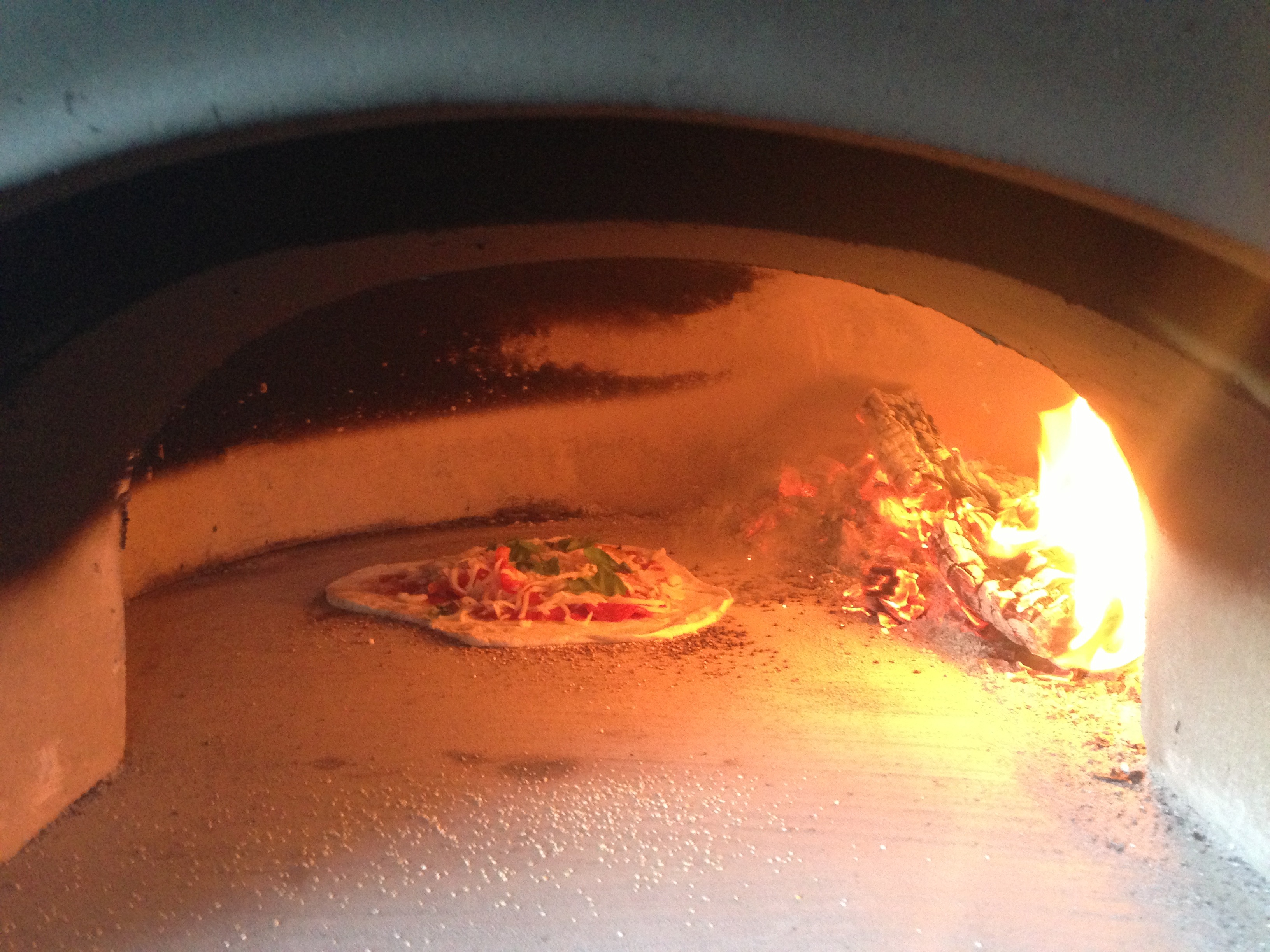 Once we got the pizzas prepared, it went fast. Most were done in about three or four minutes. They kept a careful eye on the fire, although I was too busy preparing the next pizza to go in to see what the temperature was. I told Sean he should go old school like the Generali and use his hand to see gauge how hot it was. He declined. He did keep a careful watch and rotated them often so they would cook evenly. Bob was worried that we had burned the vegetables, but they were perfectly roasted. The result was fantastic, the vegetables were slightly caramelized, smokey, a little sweet, and the pizzas turned out just as wonderful. They were all a little different and horribly misshapen, but oh so good.