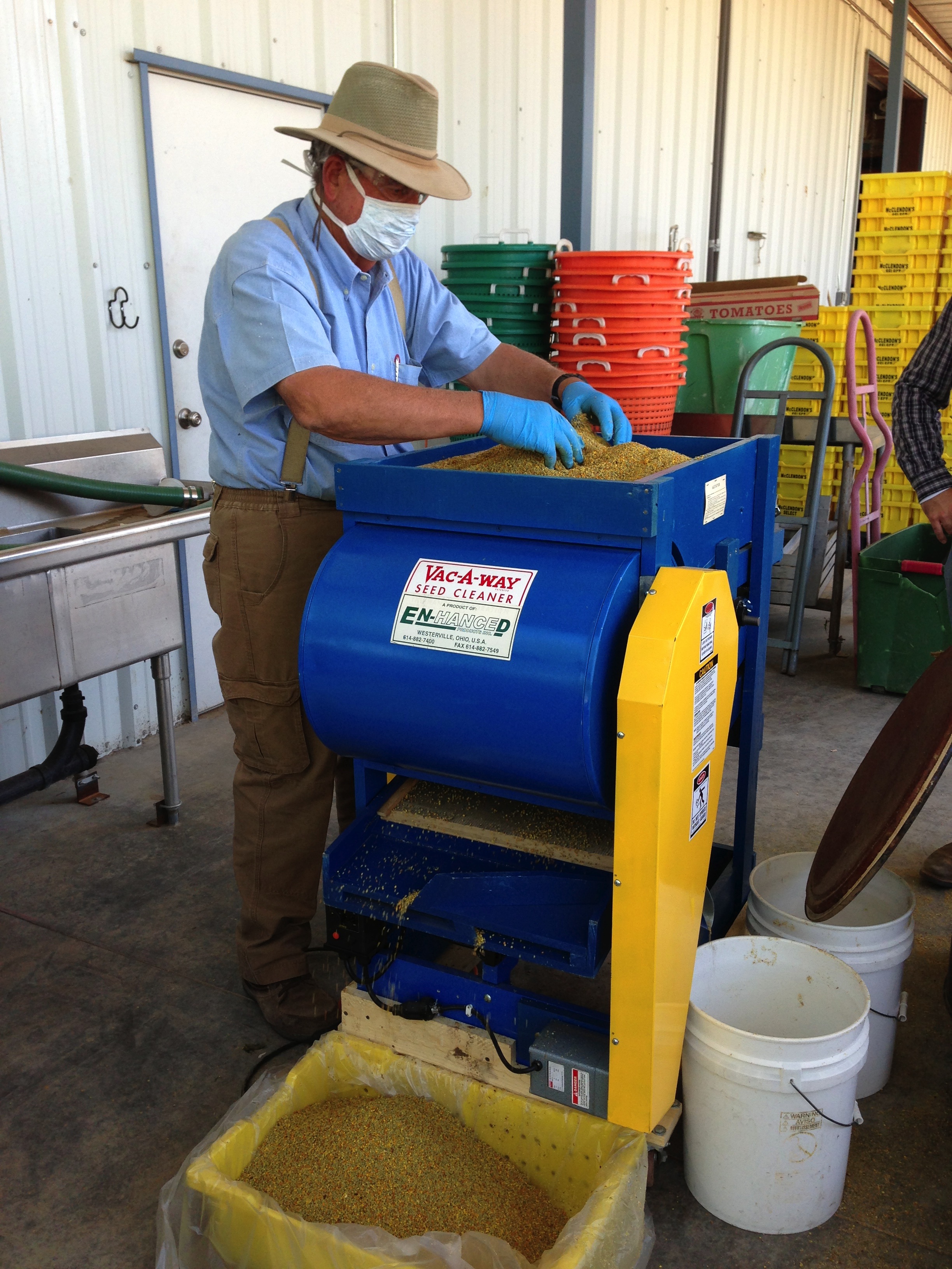 Bob just got a new toy for the farm that has been three years in the making.  In 2010 he ordered a specially modified seed cleaner to be used for cleaning bee pollen.  Three years later it arrived.  This cleaner is hand-made with wooden frames and metal screens to use agitation and air to clean our bee pollen.  The man who built this for us has a long history in doing this.  His grandfather made the first seed cleaner in the 1920’s and while ours is a little more high-tech, the same basic principles and design are used in the one we now own.