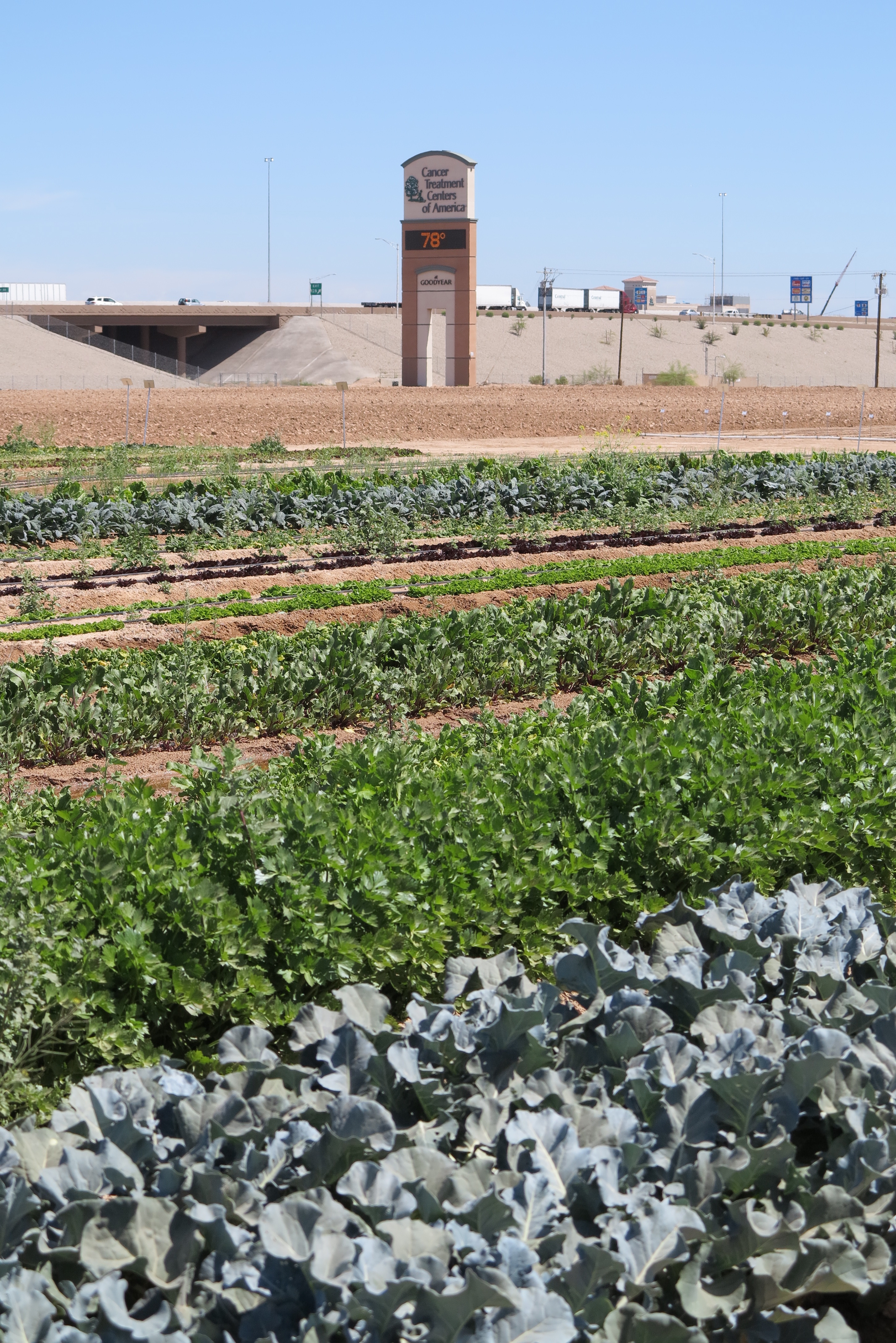 After months of work trying to get the ground prepped and ready, the new farm land out at the Cancer Treatment Centers of America is really taking off. We had our first harvest in February, and since then one thing after another is starting to come up. After all of the planning and work we have put into this new venture, it is so wonderful seeing that once hard, dry land showing signs of life. Take a look…