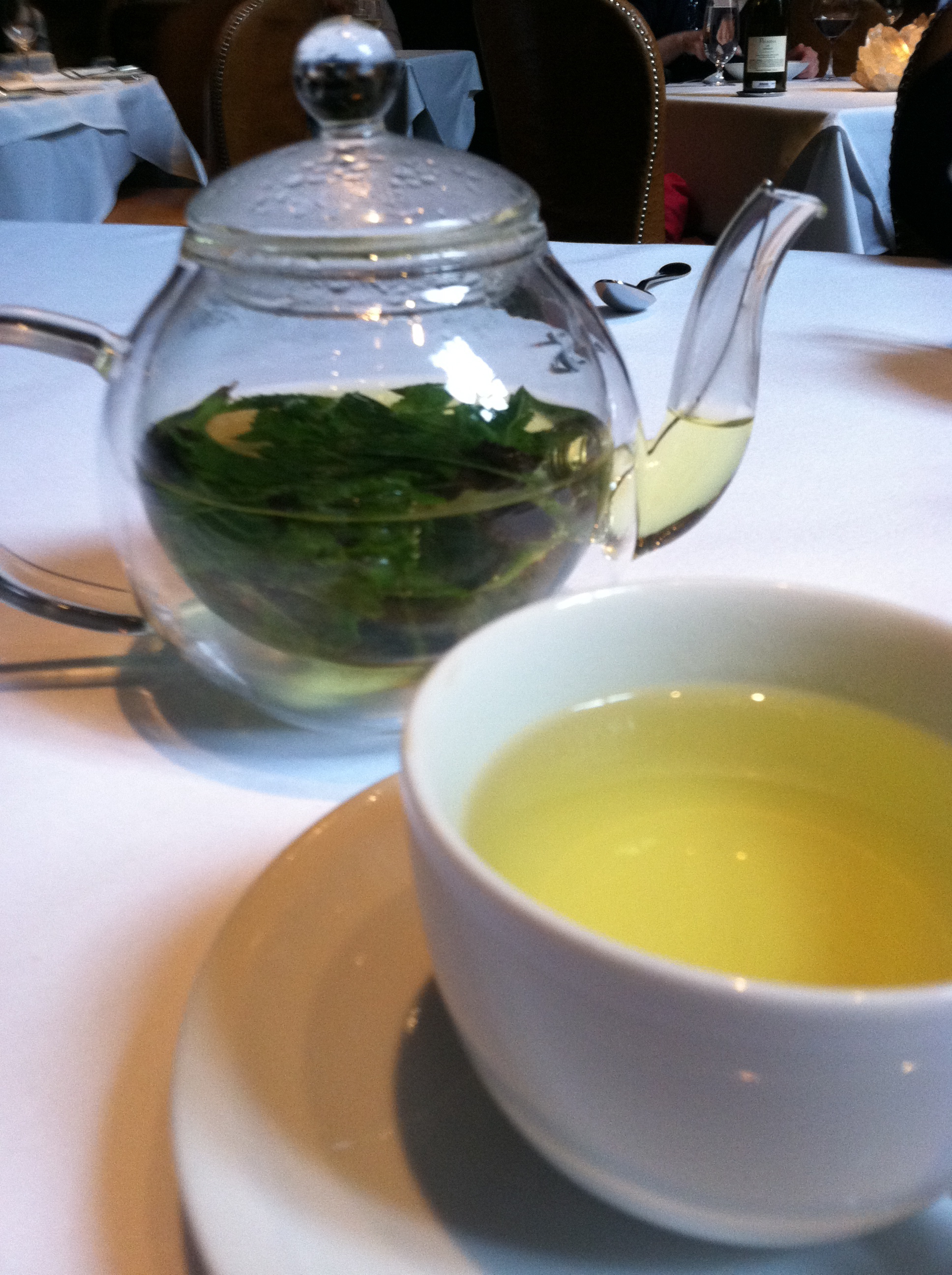Following a great recommendation, our little team of three chose Spruce for our pre-race dinner and it turned out to be the perfect place. We spent the evening in beautiful surroundings, with incredible service and a meal that helped feed our anxious appetites and calm our nerves. All three of us started with the White Peach and Burrata salad, because wouldn’t you? It was bliss on a plate. Perfect salad greens, the sweet crunch of an almond biscotti and a thick balsamic vinegar to tie it all together. I longed for the slow roasted short ribs as an entree, but instead choose the Ricotta Ravioli with Sweet Peas and Pancetta. It was an excellent choice and came with these beautiful little pea blossoms on top. The mint tea at the end of our meal had the most elegant presentation in a clear glass teapot with floating mint leaves and the smell when it was poured was exactly what I needed to relax and clear my head.
