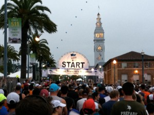 The race the next morning was so filled with the electric charge of nerves, excitement and camaraderie that you can’t help but feel pumped up. We started near the Ferry Building before dawn and the quiet clapping of a sea of sneakers against asphalt was just the loveliest sound. Where else can you sightsee like this while you run?